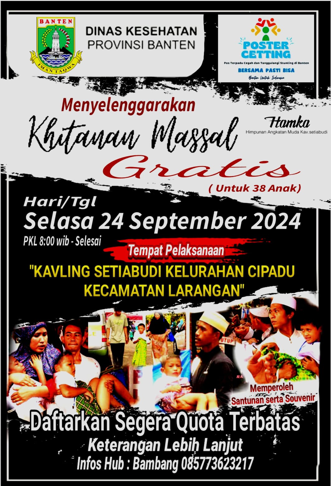 Sunatan massal yang akan dilakukan pada 38 anak pada tanggal 24 September di inisiasi oleh para pemuda yang menamakan diri komunitasnya HAMKA (Himpunan Angkatan Muda Kavling Setiabudi).