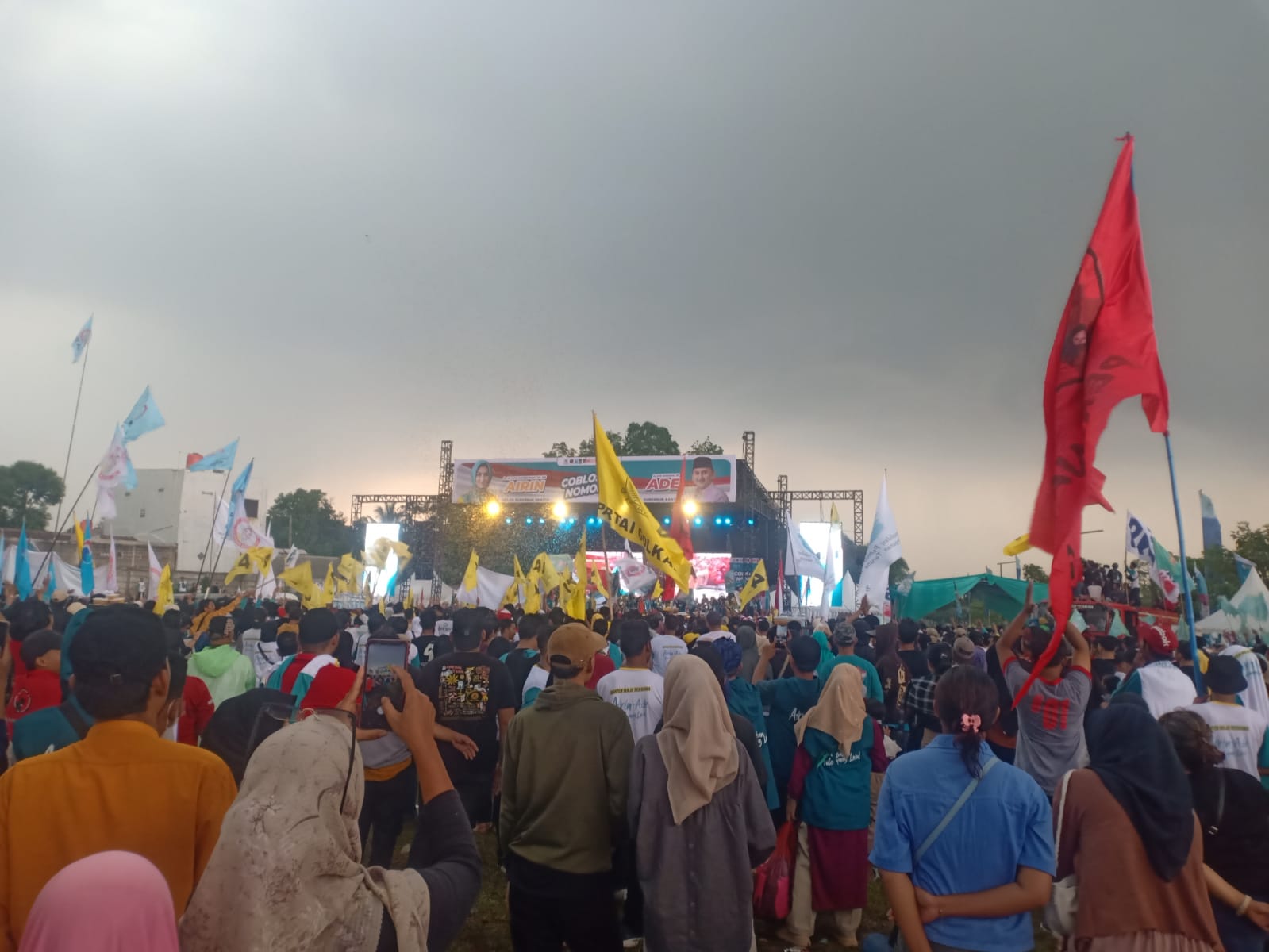 Ribuan massa memenuhi Lapangan Lugano Park, Kabupaten Tangerang pada Minggu (10/11/2024) saat dimulainya kampanye perdana pasangan calon gubernur dan wakil gubernur Banten, Airin Rachmi Diany-Ade Sumardi. Kampanye Akbar ini menjadi langkah untuk memperkuat dukungan di basis pemilih pasangan nomor urut 1 tersebut.