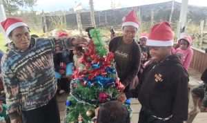 Wujud Kebahagiaan menjelang peringatan HUT Yonif 323/Buaya Putih Kali Ini berbagi kasih kepada Jemaat dan pengurus gereja Katolik St Strphanus, Kampung Kago, Distrik Ilaga, Kab.Puncak. Papua Tengah, Minggu (10/11/24)