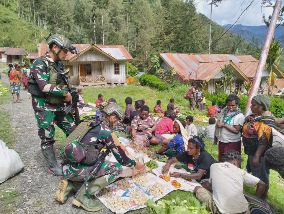 Satgas Yonif 323 TK Beoga Borong Hasil Bumi Mama Papua di Pasar Milawak