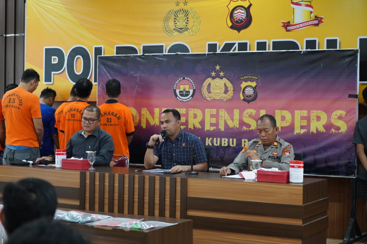 Polres Kubu Raya memaparkan sejumlah pengungkapan kasus menonjol dalam konferensi pers yang digelar di Aula Mapolres Kubu Raya pada Selasa (26/11). Dalam kesempatan itu, jajaran kepolisian menjelaskan hasil ungkap dua kasus Tindak Pidana Perdagangan Orang (TPPO), dua kasus perjudian, serta pelanggaran hukum terkait peredaran rokok ilegal dan narkotika.