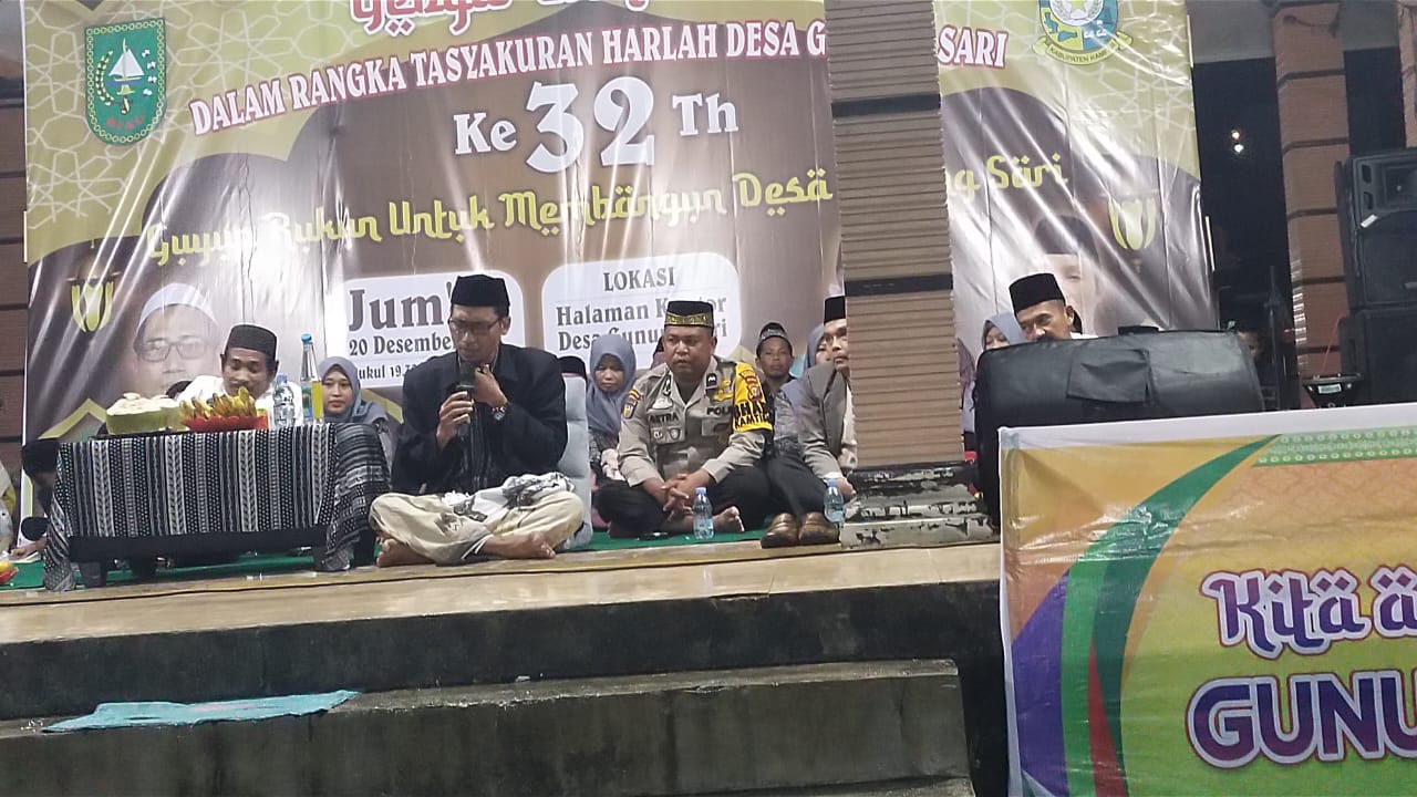 Aipda Getra, Bhabinkamtibmas Desa Gunung Sari dan Desa Gunung Mulya, Kecamatan Gunung Sahilan, Kabupaten Kampar, menunjukkan kepedulian tinggi terhadap masyarakat di wilayah binaannya. Pada Jumat (20/12/2024), Aipda Getra hadir di tengah masyarakat Desa Gunung Sari untuk meramaikan acara Gebyar Sholawat dalam rangka Hari Ulang Tahun (Harlah) Desa Gunung Sari ke-32.