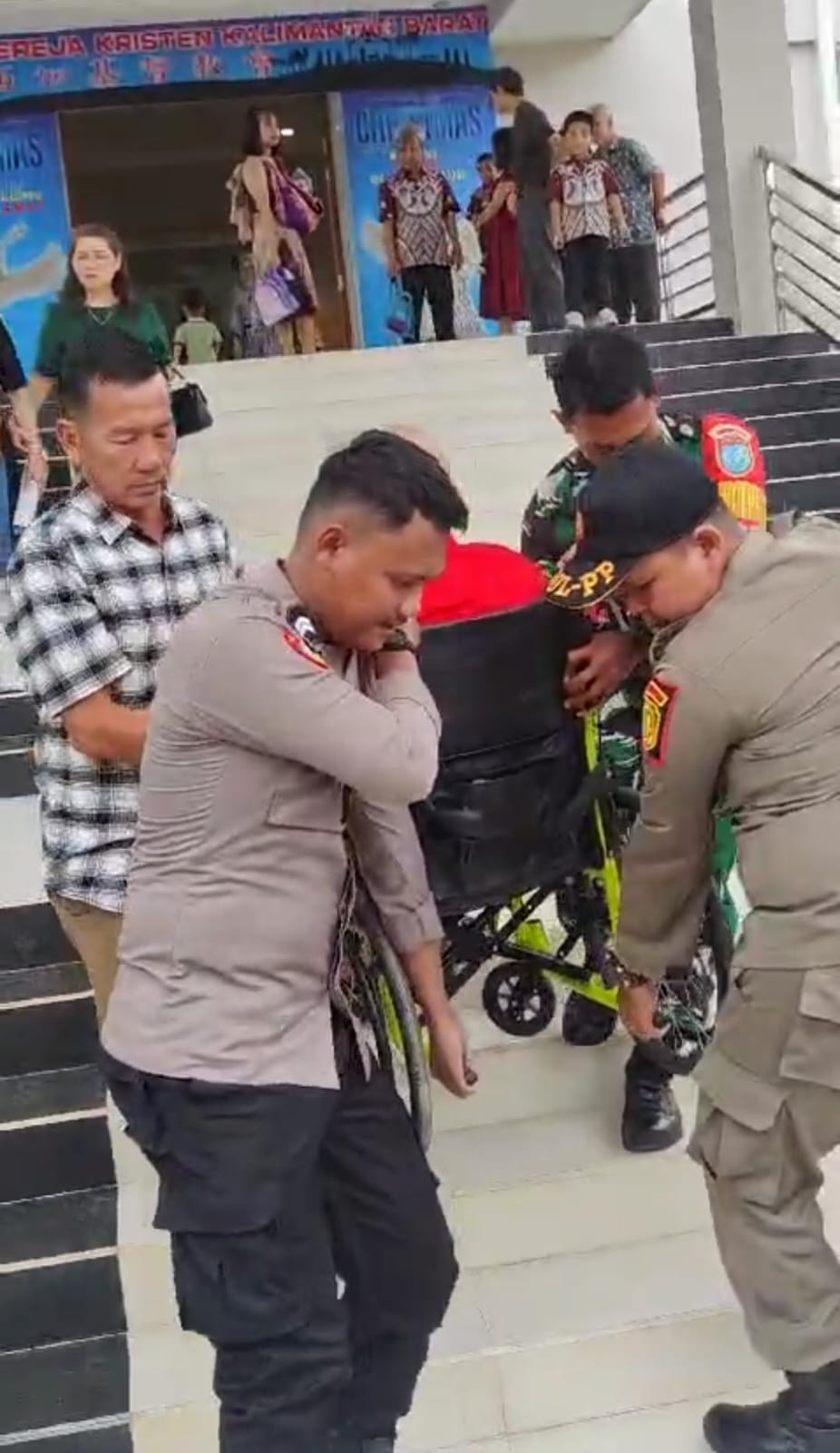 Pada Rabu (25/12), salah satu bentuk pelayanan yang diberikan adalah bantuan kepada jemaat GKKB, terutama kepada para lansia yang mengikuti ibadah Natal. Personil pengamanan membantu mengangkat kursi roda jemaat lansia untuk memastikan mereka dapat mengikuti ibadah dengan nyaman dan aman.