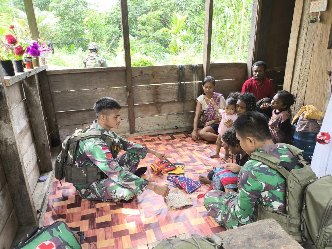 Jalin Keakraban Dengan Masyarakat, Personil Satgas Pamtas RI-PNG Yonif 131/BRS Laksanakan Anjangsana Ke Masyarakat Kampung Wambes