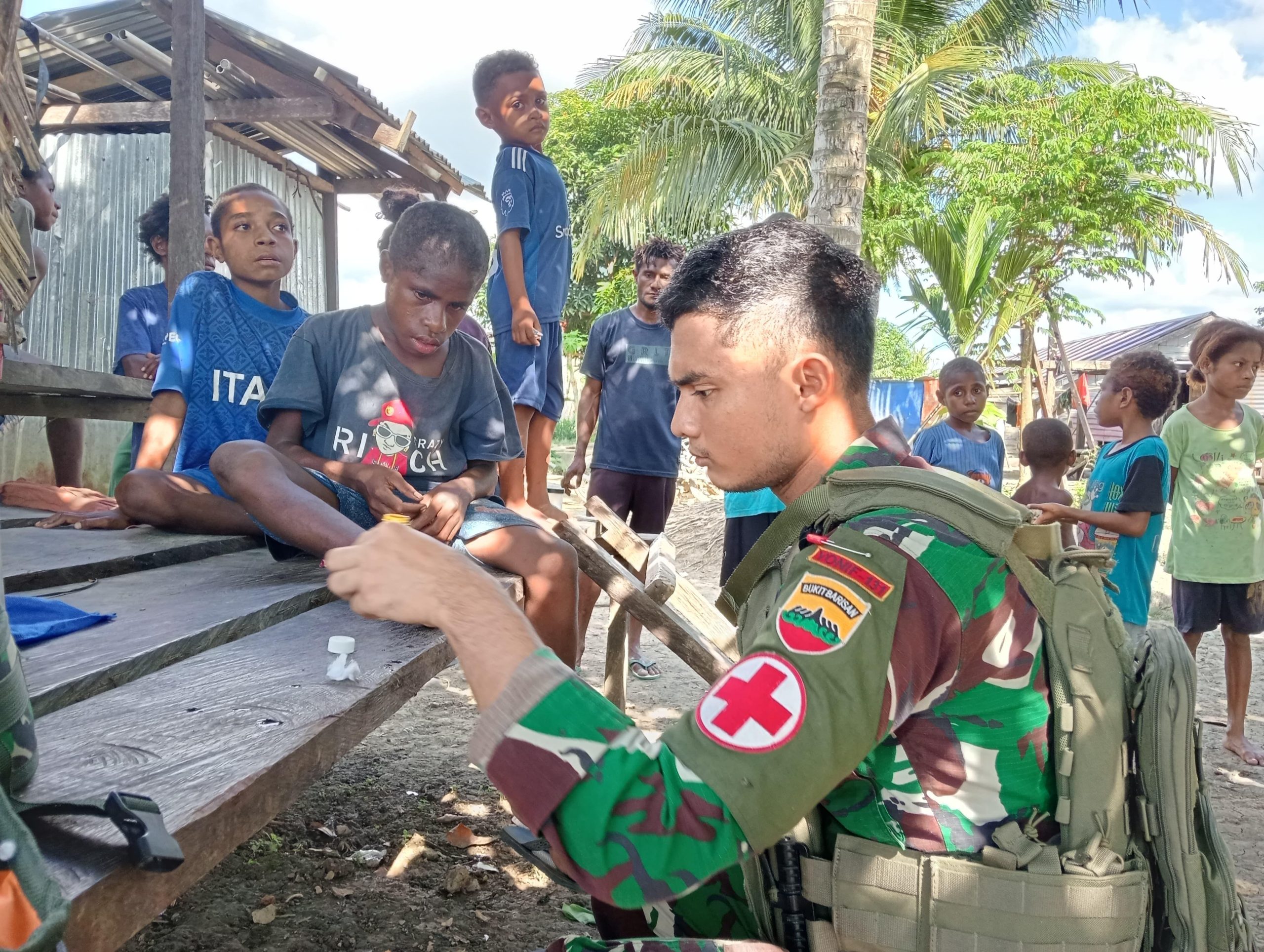 Sebagai wujud kepedulian terhadap masyarakat papua, Satgas Yonif 131/BRS Pos Pitewi menjalin silaturahmi kepada masyarakat dengan cara memberikan pengobatan gratis dengan masyarakat di Kampung Pitewi, Distrik Arso Timur, Papua, Jum’at (24/01/2025).