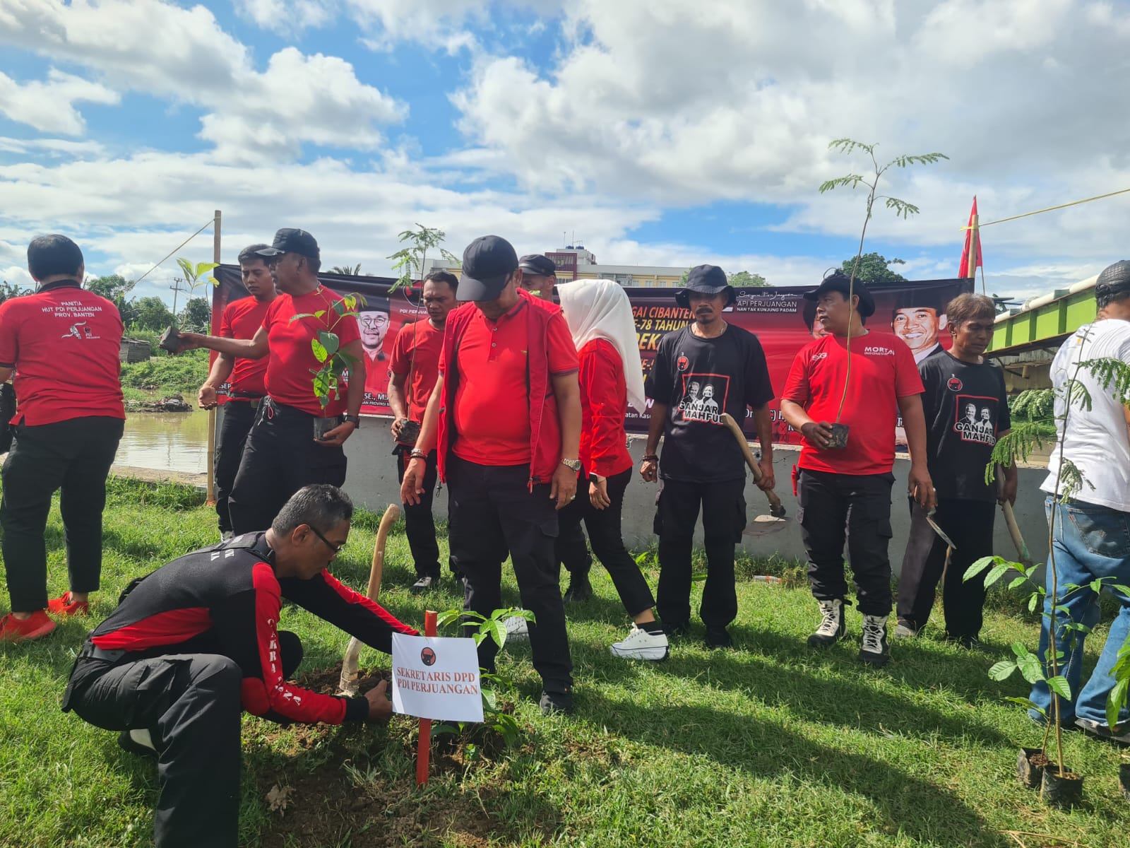 Dalam rangka merayakan ulang tahun ke-52, DPD PDIP PROVINSI BANTEN menggelar aksi penanaman pohon, bersih-bersih lingkungan dan pembersihan aliran sungai secara serentak di sepanjang Bantaran Sungai Cibanten, Kelurahan Banten, Kecamatan Kasemen Kota Serang Sabtu (25/1/2025).