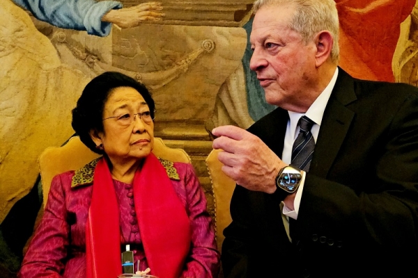 Megawati pun memberikan contoh, tantangan global yang dihadapi yaitu soal perubahan iklim. Misalnya, di Indonesia saja sebagai negara kepulauan terbesar di dunia dengan lebih dari 17.000 pulau, Indonesia semakin sering menghadapi bencana ekologis.