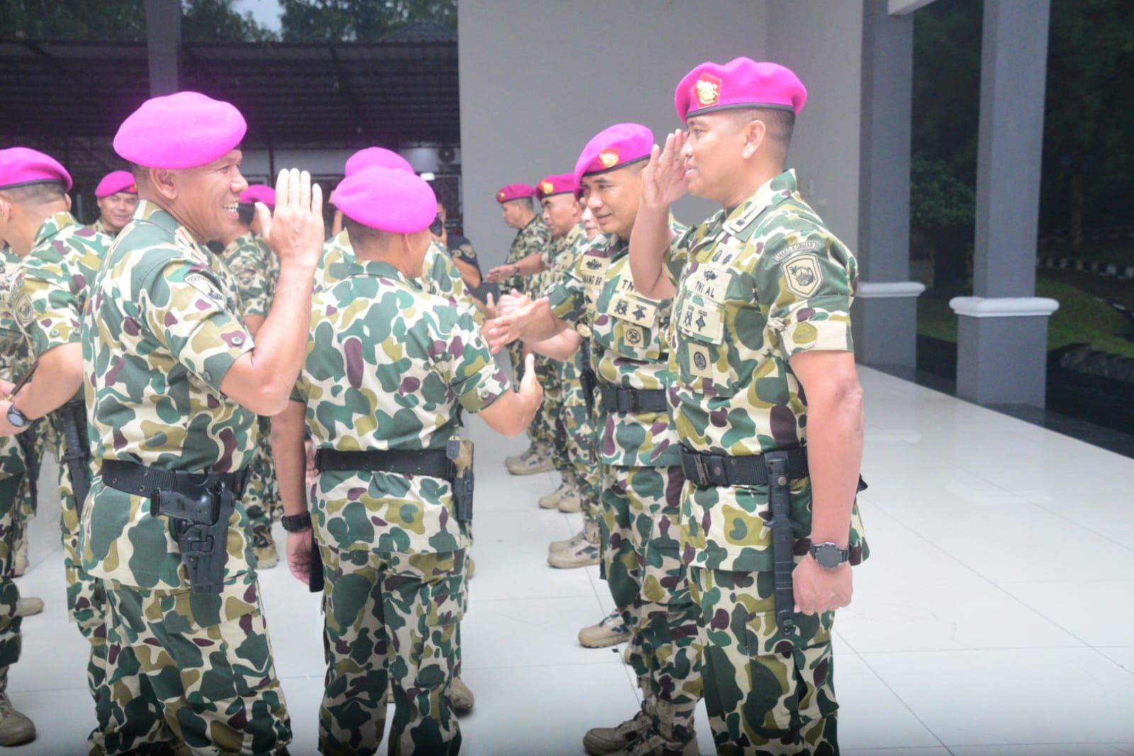 Komandan Pasmar 1 (Danpasmar 1) Brigjen TNI (Mar) Umar Farouq, S.A.P,. CHRMP., M.Tr.Opsla., M.Han., mengikuti acara serah terima jabatan (Sertijab) di lingkungan Korps Marinir yang dipimpin oleh Komandan Korps Marinir (Dankormar) Mayjen TNI (Mar) Dr. Endi Supardi, S.E., M.M., M.Tr.Opsla., CHRMP., CRMP., di Gedung Gada Kesatrian Marinir Hartono Cilandak, Jakarta Selatan, Sabtu (08/03/2025).