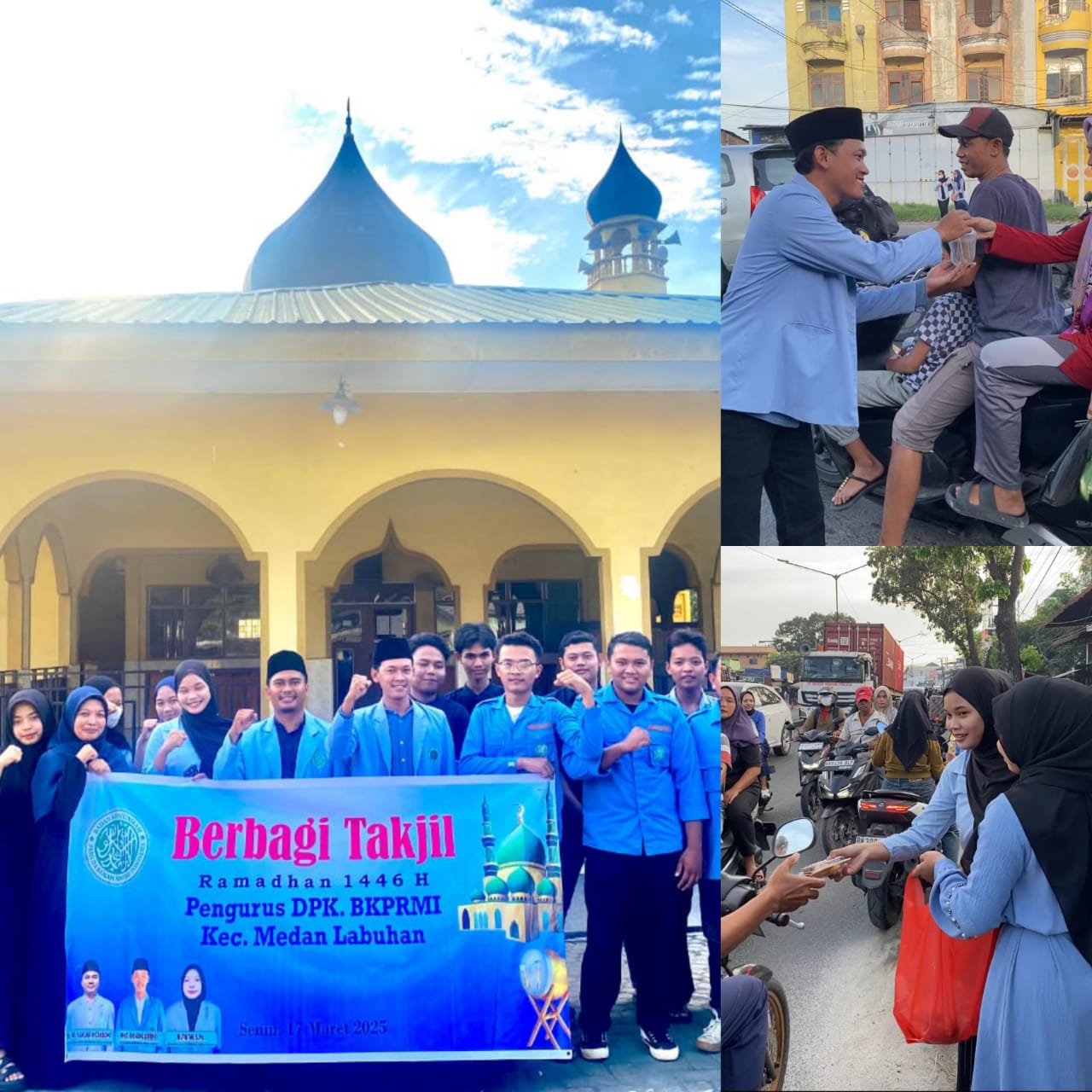 Dewan Pengurus Kecamatan Badan Komunikasi Pemuda Remaja Masjid Indonesia (DPK BKPRMI) Kecamatan Medan Labuhan laksanakan kegiatan pembagian takjil gratis di Bulan Ramadhan 1446 Hijriah, Senin (17/03/2025).