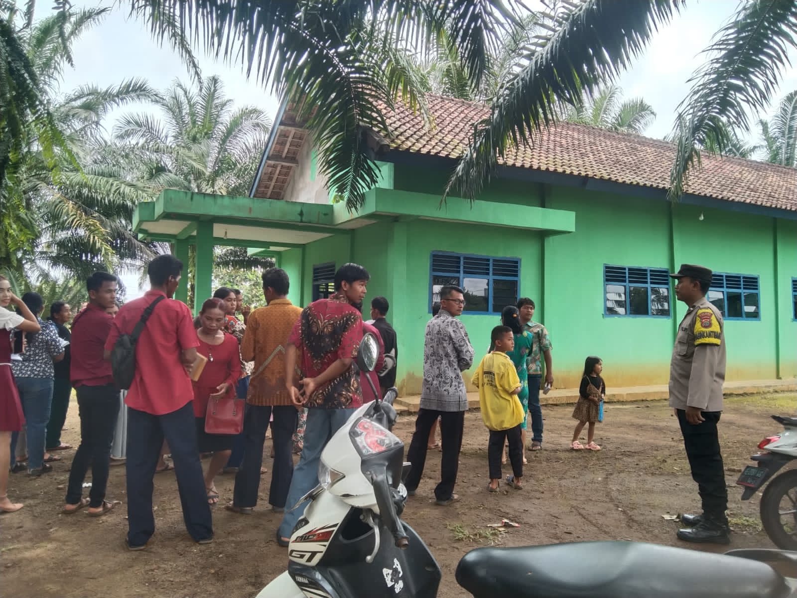 Polsek Baradatu Polres Way Kanan melakukan pengamanan rangkaian kegiatan Perayaan Paskah Trihari Suci Minggu Palma di Gereja Santo Petrus Kampung Bumi Merapi Kecamatan Baradatu Kabupaten Way Kanan. Senin (14/04/2025).