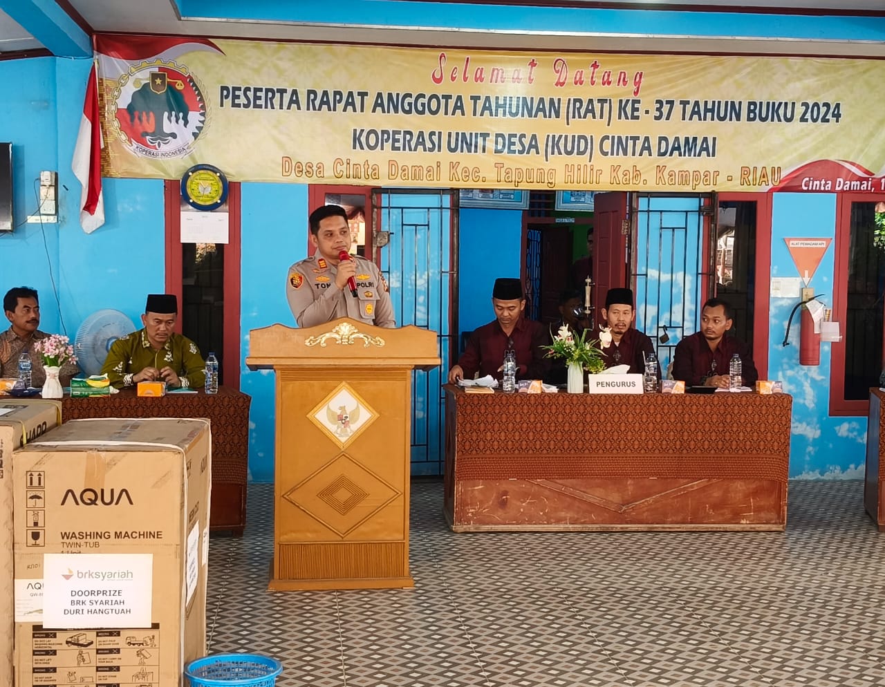 Kepala Kepolisian Sektor (Kapolsek) Tapung Hilir Polres Kampar, menghadiri acara Rapat Anggota Tahunan (RAT) ke 37 KUD CINTA DAMAI Tahun Buku 2024, Kamis (17/04/2025).