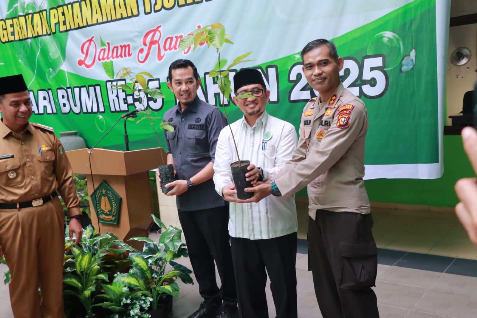 Polres Kampar berkomitmen menjaga kelestarian lingkungan dan mendukung program penghijauan di Kabupaten Kampar. Hal ini dibuktikan dengan kehadiran Kapolres Kampar, AKBP Mihardi Mirwan, dalam acara Launching Gerakan Penanaman 1 Juta Pohon Matoa Dalam Rangka Hari Bumi Ke 55 Tahun 2025. Acara ini dilaksanakan di Kantor Kementerian Agama Bangkinang Kota, Kabupaten Kampar, pada Selasa (22/04/2025).