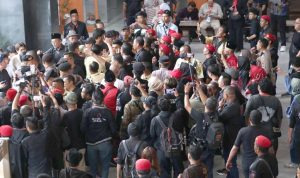 Upaya mereka dihalangi oleh petugas Pengamanan Dalam (Pamdal) Pengadilan dan Satuan Tugas (Satgas) PDI Perjuangan.