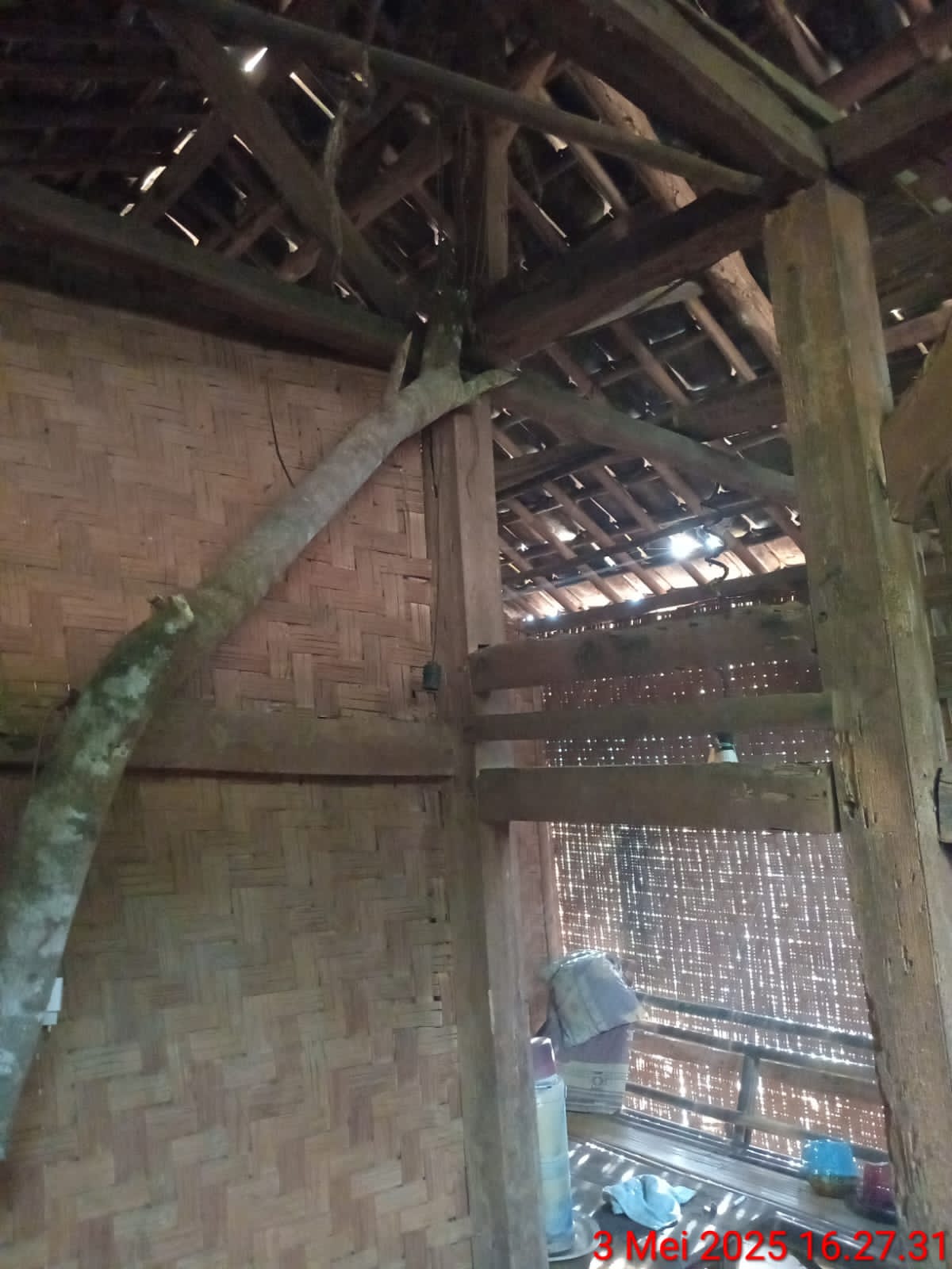 Rumahnya berdinding anyaman bambu yang telah rapuh, berlubang di sana-sini, dengan atap bocor yang tak mampu menahan deras hujan.