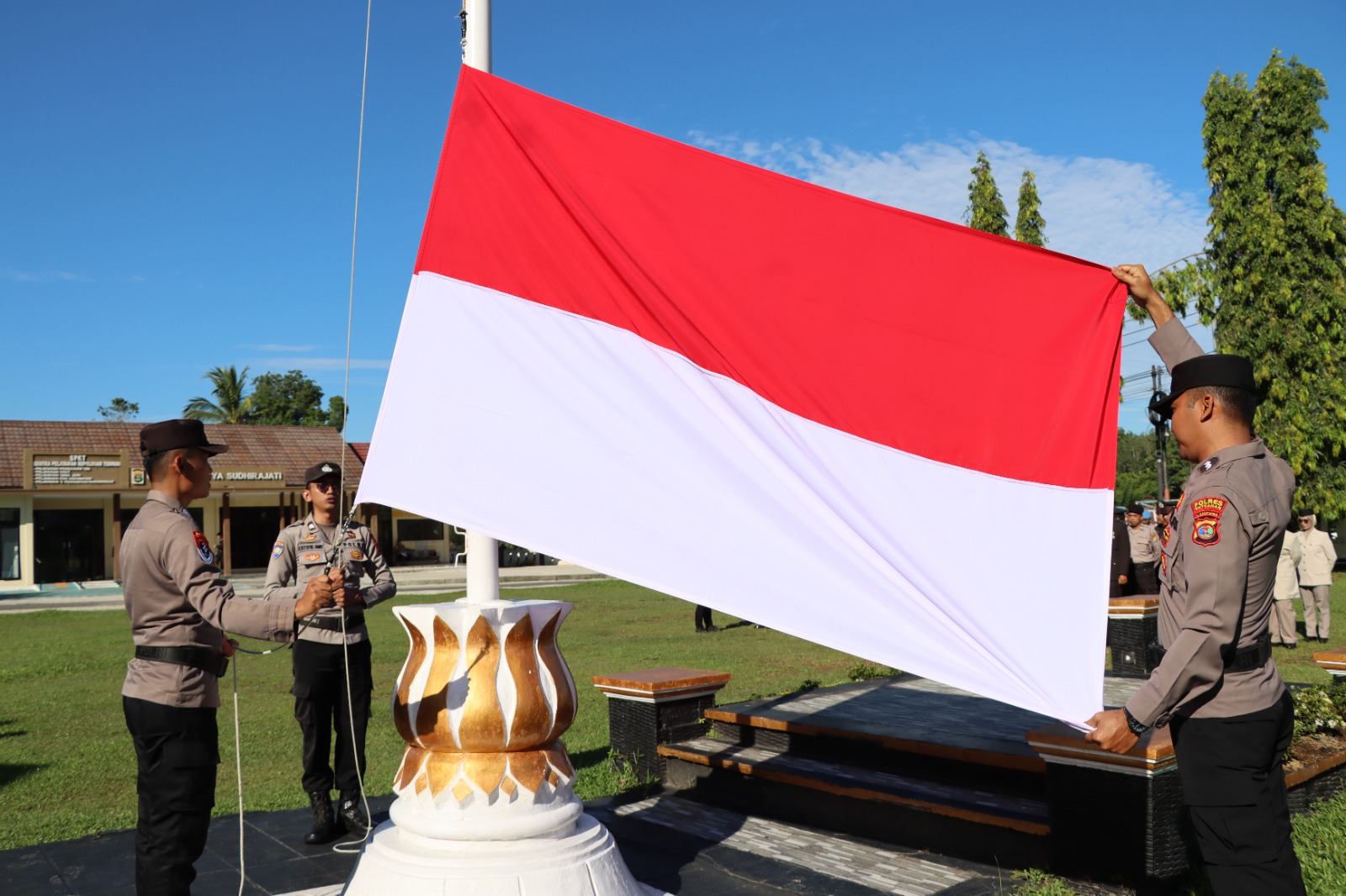 Upacara berlangsung di Lapangan Mako Polres Way Kanan dipimpin oleh Kapolres Way Kanan AKBP Adanan Mangopang dan turut dihadiri Wakapolres Way Kanan Kompol Iwan Setiawan, pejabat utama, perwira, dan seluruh bintara serta ASN Polri.