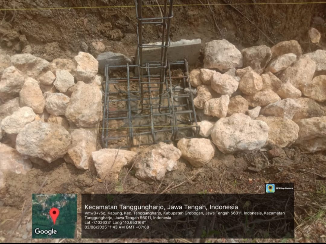 Dari dokumentasi yang dihimpun di lokasi proyek, terlihat struktur besi pondasi tampak hanya diletakkan di atas tanah yang dipadatkan, tanpa adanya galian dasar sebagaimana mestinya. Padahal, pondasi jenis ini seharusnya ditanam cukup dalam untuk menjamin kekuatan struktur terhadap beban dan tekanan tanah.