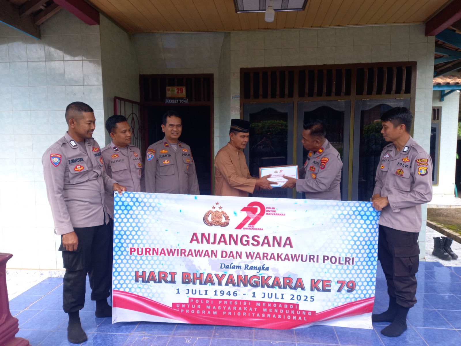 Kapolres Way Kanan AKBP Adanan Mangopang melalui Kasat Binmas AKP Sundoro menyampaikan acara tersebut dalam rangka HUT Bhayangkara ke 79 tahun 2025 sebagai bentuk kepedulian sekaligus penghargaan terhadap jasa-jasa para anggota Polri yang telah mengabdikan diri mereka kepada bangsa dan negara.