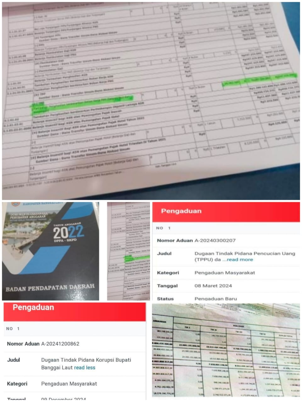 •Dugaan Penyembunyian Dana DBH Pusat: Dana DBH pusat tahun anggaran 2024 sebesar ± Rp 51.492.450.000,- diduga dirahasiakan oleh Tim TAPD Kab. Banggai Laut yang terdiri dari Sekda, Kepala BPKAD dan Kepala BAPPEDA (Rasid Pandei, SH) dan tidak disampaikan pada Rapat Pembahasan Anggaran Perubahan Tahun 2024. Hal ini diduga menyalahi ketentuan Undang-Undang Pengelolaan Keuangan Daerah.