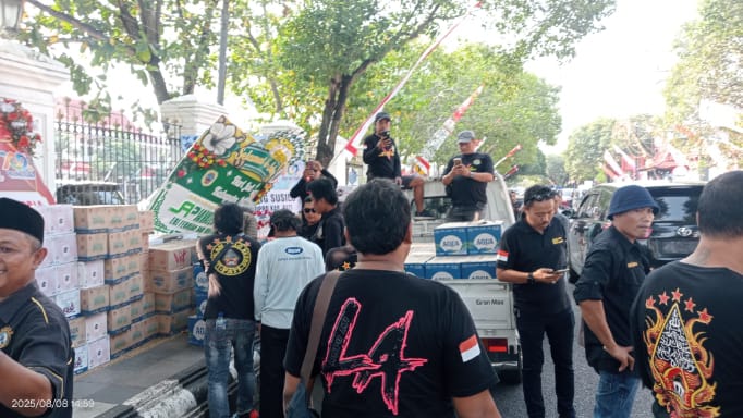 Bantuan logistik mengalir bagaikan arus banjir bandang: 300 dus air mineral dari ormas Lindu Aji dan Garda Prabowo, 300 paket makanan Jumat Berkah, keranjang-keranjang buah dari pedagang Puri, ketela dari petani desa, hingga kiriman dana dari perantau di Sumatera dan Kalimantan. Gudang penyimpanan sudah tak mampu menampung — bantuan tumpah ke jalanan, menjadi simbol bahwa rakyat siap bertempur.