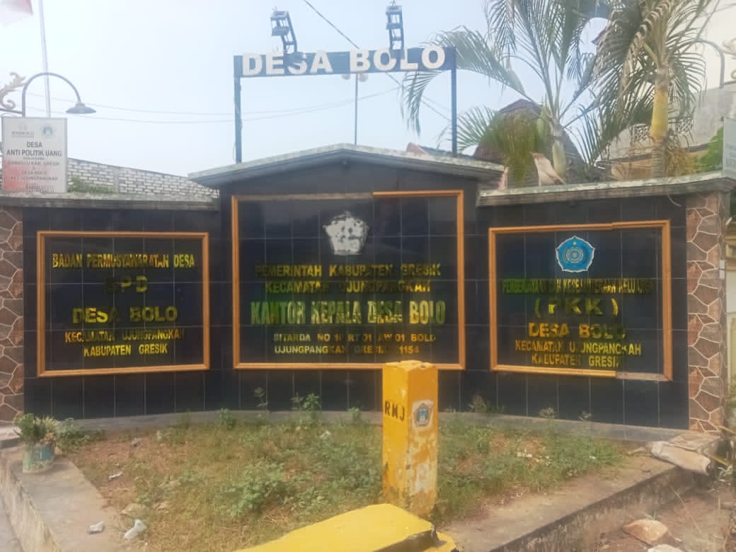 Sebuah papan proyek berdiri tegak di atas tanah kapur Desa Bolo, Kecamatan Ujungpangkah, Kabupaten Gresik. Di sana tertulis dengan gagah, “Pembangunan Gedung Serba Guna”, Dana Bantuan Khusus (BK) Kabupaten Tahun Anggaran 2025 sebesar Rp 95 juta, dengan volume L=20 meter dan P=50 meter. Pelaksana tertulis TPK Desa Bolo.