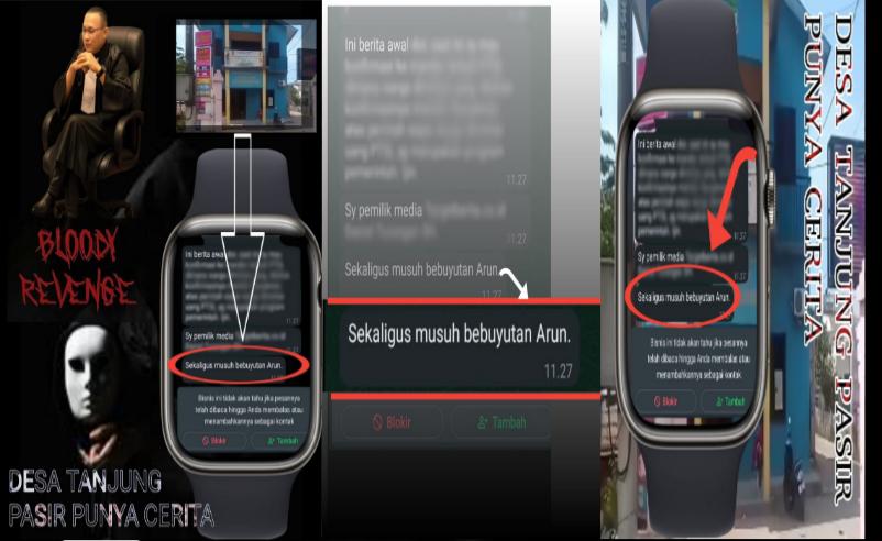 Saat ini Noven Saputera,S.H. Kuasa Hukum dari saudara Arun,S.Ip kembali mengungkapkan telah ditemukan lagi satu kejanggalan dimana menyebutkan dalam bukti chat yang secara otomatis pengakuan atas dirinya sendiri bahwa beliau atau diduga salah satu aktor dari serangan pemberitaan yang dimuat yang tentunya memojokan Klien kami tersebut menyebutkan Kades Arun S.Ip merupakan Musuh Bebuyutannya.