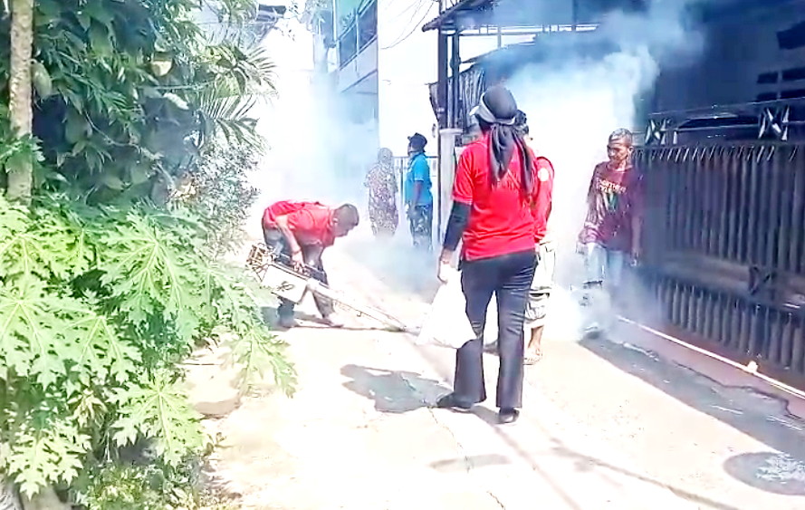 Tim relawan Alrizoma Akrom Anggota DPRD Kota Tangerang FRAKSI PDI Perjuangan melakukan kegiatan pengasapan di daerah pemilihan (dapil) untuk mencegah penyebaran penyakit Demam Berdarah Dengue (DBD). Kegiatan ini merupakan bagian dari upaya preventif untuk menjaga kesehatan masyarakat di Kota Tangerang.