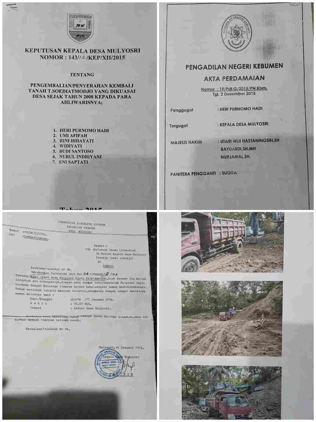 – Kemenangan Hukum (2015): Setelah bertahun-tahun berjuang, Pengadilan Negeri Kebumen melalui Putusan Pengadilan Negeri Kebumen yang didasarkan pada Akta Perdamaian Nomor: 19/Pdt.G/2015/PN.Kbm tanggal 2 Desember 2015, secara sah memerintahkan pengembalian tanah seluas kurang lebih 1.800 m^2 tersebut kepada 7 ahli waris.