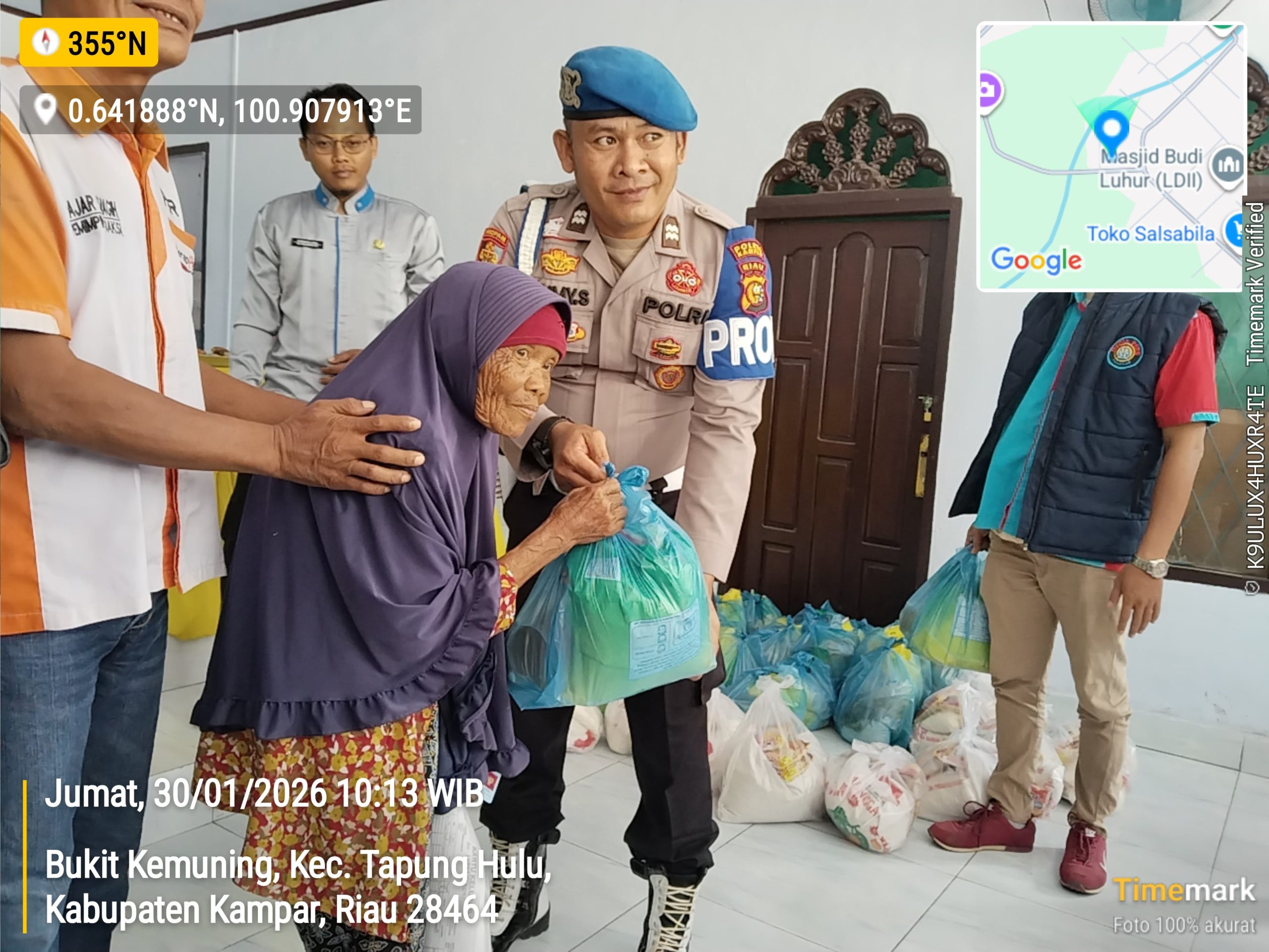 Kapolsek Tapung Hulu, Iptu Riko Rizki Mazri, S.H., M.H., dalam keterangannya menyampaikan bahwa kegiatan bantuan sosial ini merupakan agenda yang digagas oleh Pers Keadilan Tapung Hulu dan mendapat dukungan dari perusahaan-perusahaan yang ada di wilayah Tapung Hulu.