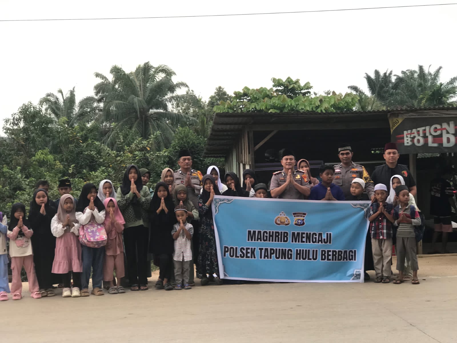 Kapolsek Tapung Hulu IPTU Riko Rizki Masri, S.H., M.H. dalam kesempatan itu menyampaikan bahwa kegiatan Maghrib Mengaji bukan sekadar agenda seremonial, melainkan bentuk kepedulian nyata terhadap pembinaan karakter anak-anak di lingkungan masyarakat.