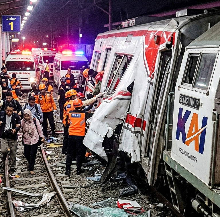 Telah terjadi kecelakaan kereta api yang melibatkan KA Jarak Jauh Argo Bromo Anggrek (KA 4) dan KRL Commuter Line tujuan akhir Cikarang di area emplasemen Stasiun Bekasi Timur pada Senin (27/4) malam. PT Kereta Api Indonesia (Persero) saat ini fokus pada evakuasi penumpang dan pemulihan jalur.(27 April 2026).