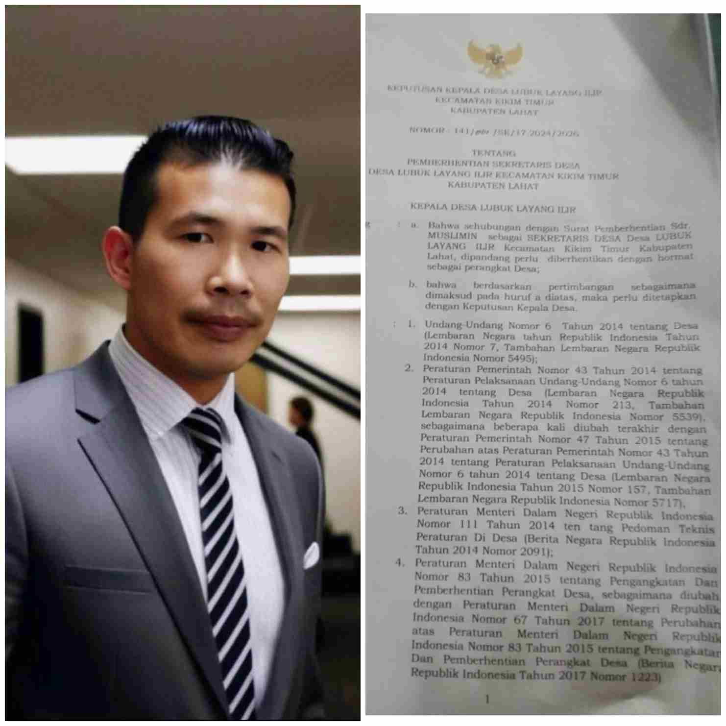 28 April 2026- Dugaan praktik kesewenang-wenangan jabatan di Desa Lubuk Layang Ilir, Kecamatan Kikim Timur, Kabupaten Lahat, Sumatera Selatan, kini resmi mendarat di meja pengawasan tingkat nasional. Polemik ini memanas setelah terbitnya SK Pemberhentian Sekretaris Desa Muslimin Nomor: 141/001/SK/17.2024/2026, yang disusul dengan informasi pemecatan serupa terhadap seorang Kepala Dusun berinisial D, di tengah bergulirnya proses hukum di kepolisian.