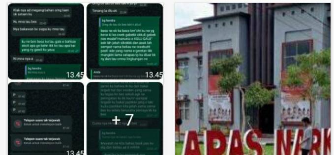 Tangkapan layar percakapan yang berisi perintah langsung untuk membuang “bahan” (barang bukti narkotika) guna menghindari sergapan aparat.