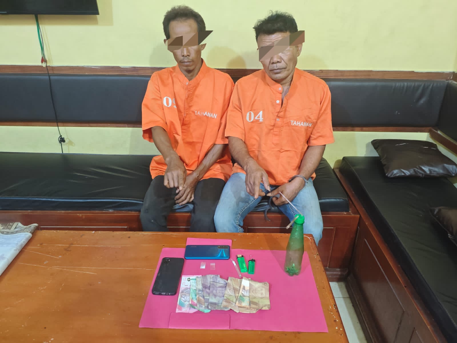 Dalam penggeledahan yang dilakukan dengan teliti di kediaman pelaku, petugas menemukan sejumlah barang bukti yang memperkuat dugaan keterlibatan mereka antara lain Satu paket sabu (berat bruto 0,13 Gram),Satu set alat hisap (Bong),Plastik klip bening (diduga pembungkus),Dua buah mancis dan uang tunai Rp 170.000.