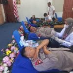 Sat Brimob Polda Jabar Laksanakan Donor Darah Dalam Rangka Ulang tahun Lanal TNI- AL Cirebon