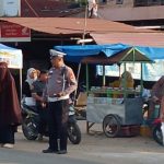 LALU LINTAS SEMRAWUT, BHABINKAMTIBMAS POLSEK TAPUNG HULU ‘PASANG BADAN’ DI PASAR SUKARAMAI
